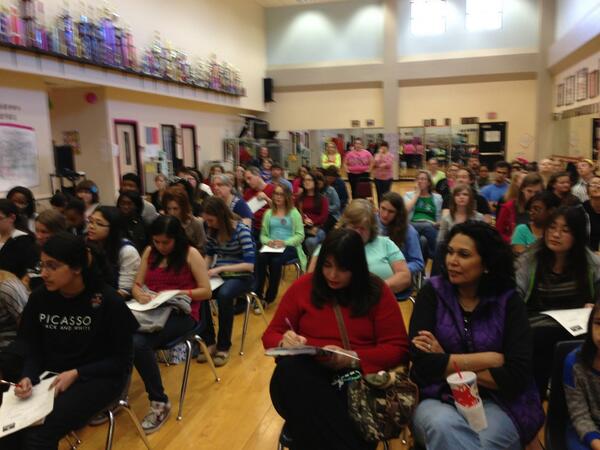 There were dozens of fabulous authors (some of whom I've been dying to meet for a long time, like Kate Brian, Justina Chen, and Claudia Gray). We started out the day on stage, while hundreds of teens watched from the auditorium.